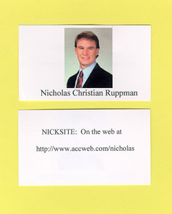 Enclosed is a card that has Nicholas's image on one side, it is his senior college picture. On the other side is the address of a web site that was created as a tribute to him. We hope that you will visit the site and remember Nicholas, Gabrielle and Josh, ourselves and Sherrie.